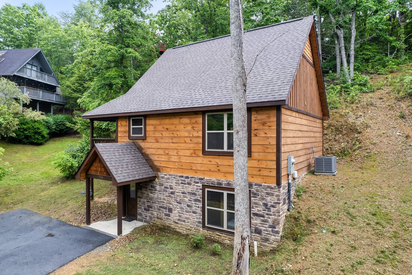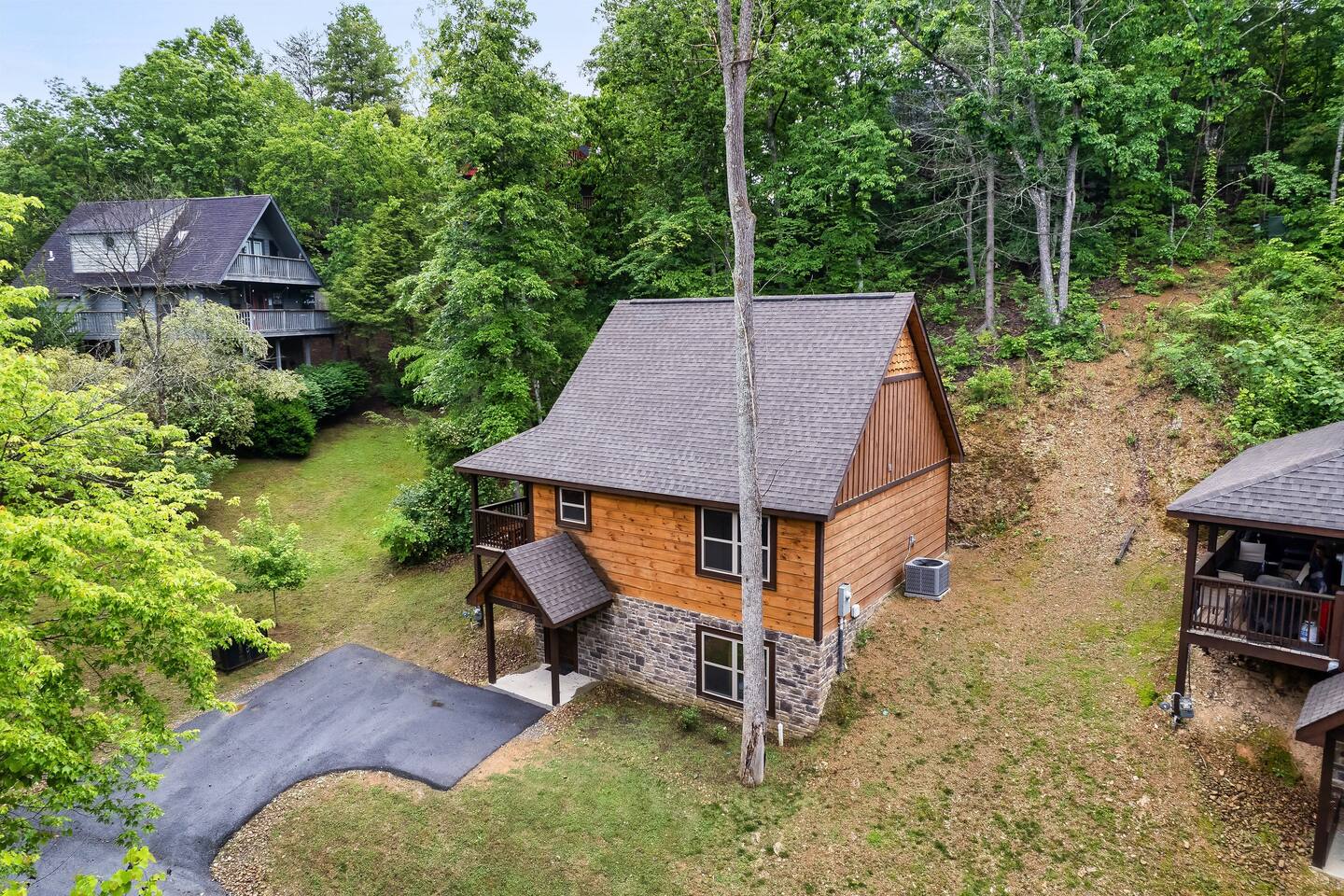 This new cabin is in the heart of Pigeon Forge, across from The Island, short drive to Dollywood, 10 miles to Gatlinburg and entrance to the National Park. 2 bedrooms feature king beds upstairs, 3rd bedroom downstairs has full size bunks. Living room also has pull-out couch for a total of 10 people. kitchen is fully equipped, covered porch includes hot tub, BBQ grill, large picnic table and patio chairs. 2 baths, 1 upstairs Downstairs also has a well equipped game room. Central AC/heat.